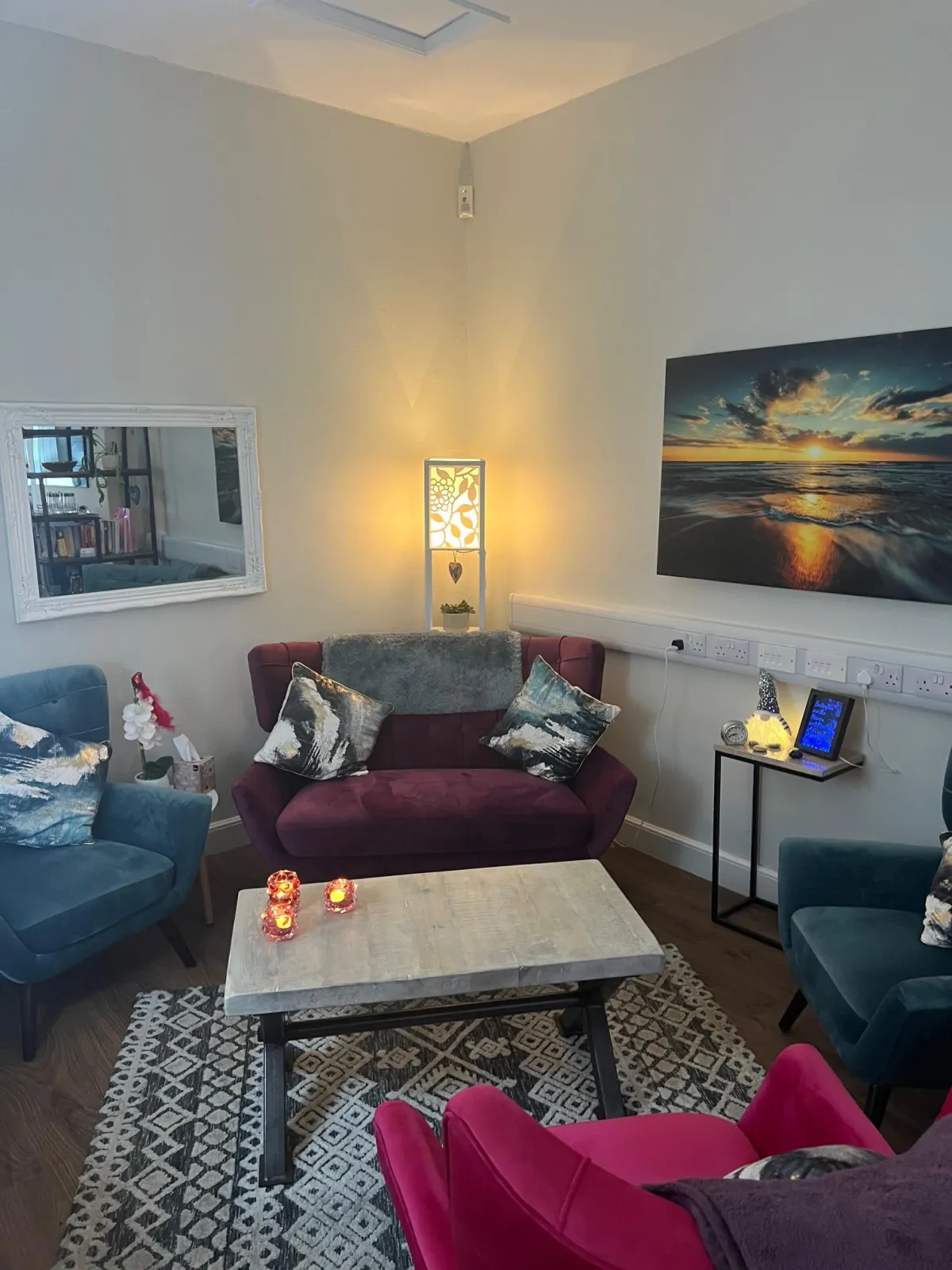 Working from my beautiful room or online, I offer a supportive space for you where you can feel safe, valued and heard.